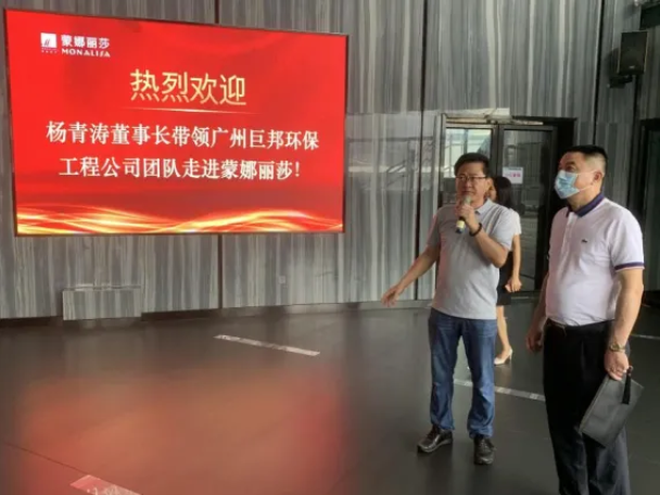 ?2021年8月14日上午,為了更好了解企業環保需求及企業管理發展方向,廣州巨邦環保工程設備有限公司楊青濤董事長及周彥群總經理帶領公司管理層12名干部前往佛山南海區西樵鎮太平工業區上市公司--蒙娜麗莎集團股份有限公司進行實地參觀交流。