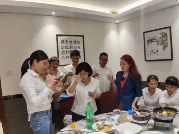 大家邊吃邊聊,仿佛有說不完的話,舉杯暢飲樂開懷,共同慶祝這一個喜慶的日子,每個巨邦人的臉上都洋溢出喜悅的笑容。